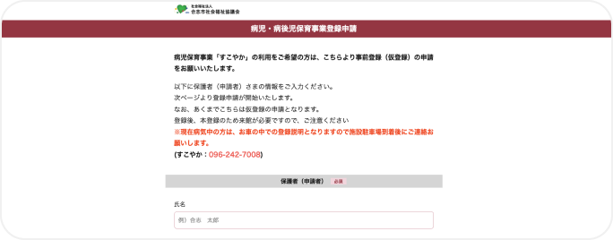 自宅や職場での空き時間を利用して、こちらの事前登録フォームに必要事項(お子様の基本情報、健康状態、保護者の連絡先等)及び来館日時の希望日を入力してください。