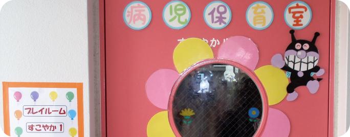 お子様が病気や怪我等で学校や保育園での集団生活が困難な時、お仕事の都合等で家庭での安静な療養が出来ないお子様(生後2ヶ月~小学校3年生まで)をお預かり致します。