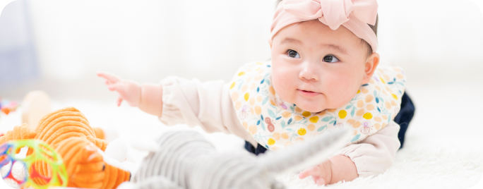 お子様が1日楽しく過ごせるように、月齢や症状に合わせた遊びを担当看護師・保育士が考えます。おもちゃや絵本、DVD等多数ご用意しています。(ご自宅から好きな物をご持参いただいても大丈夫です)